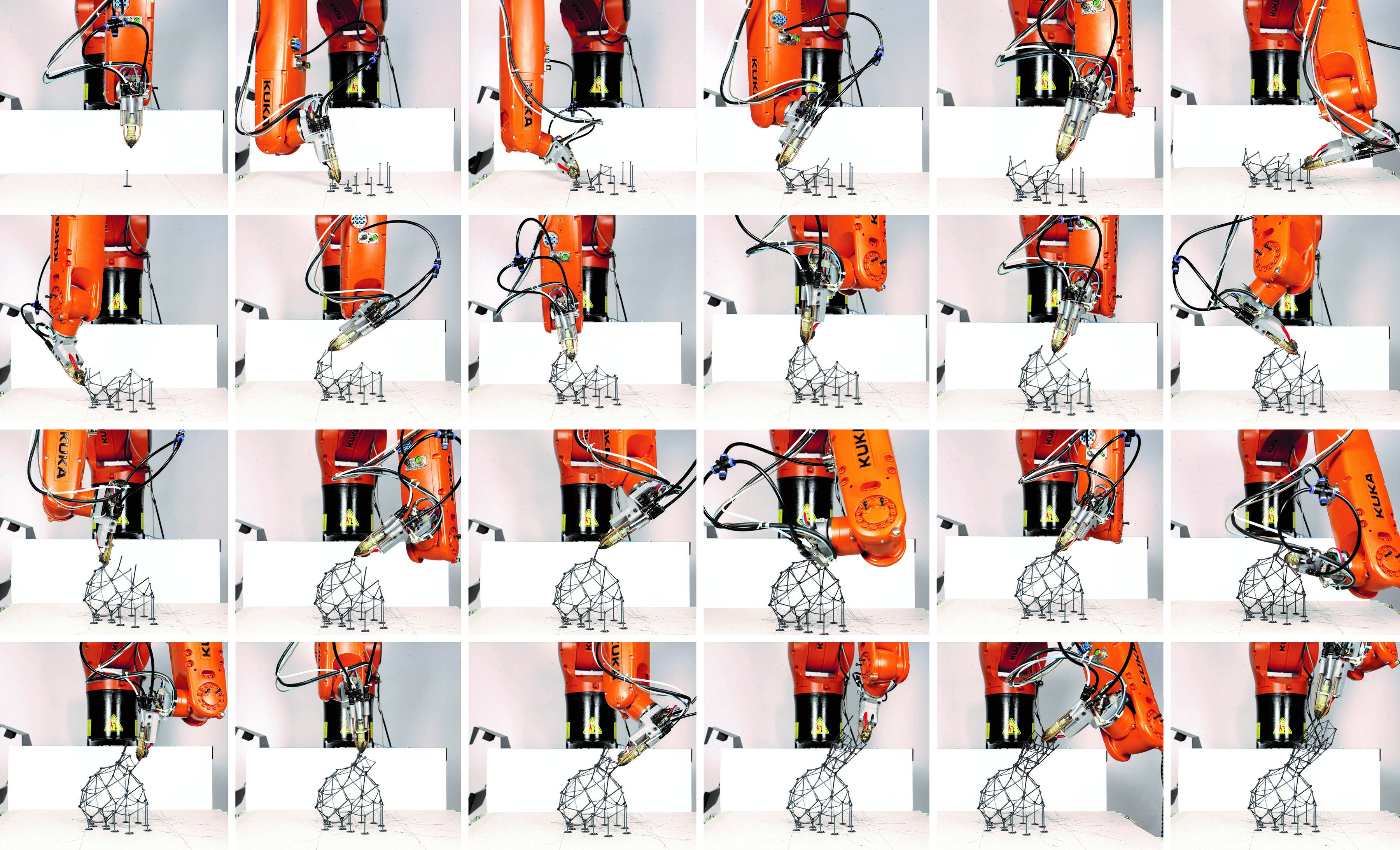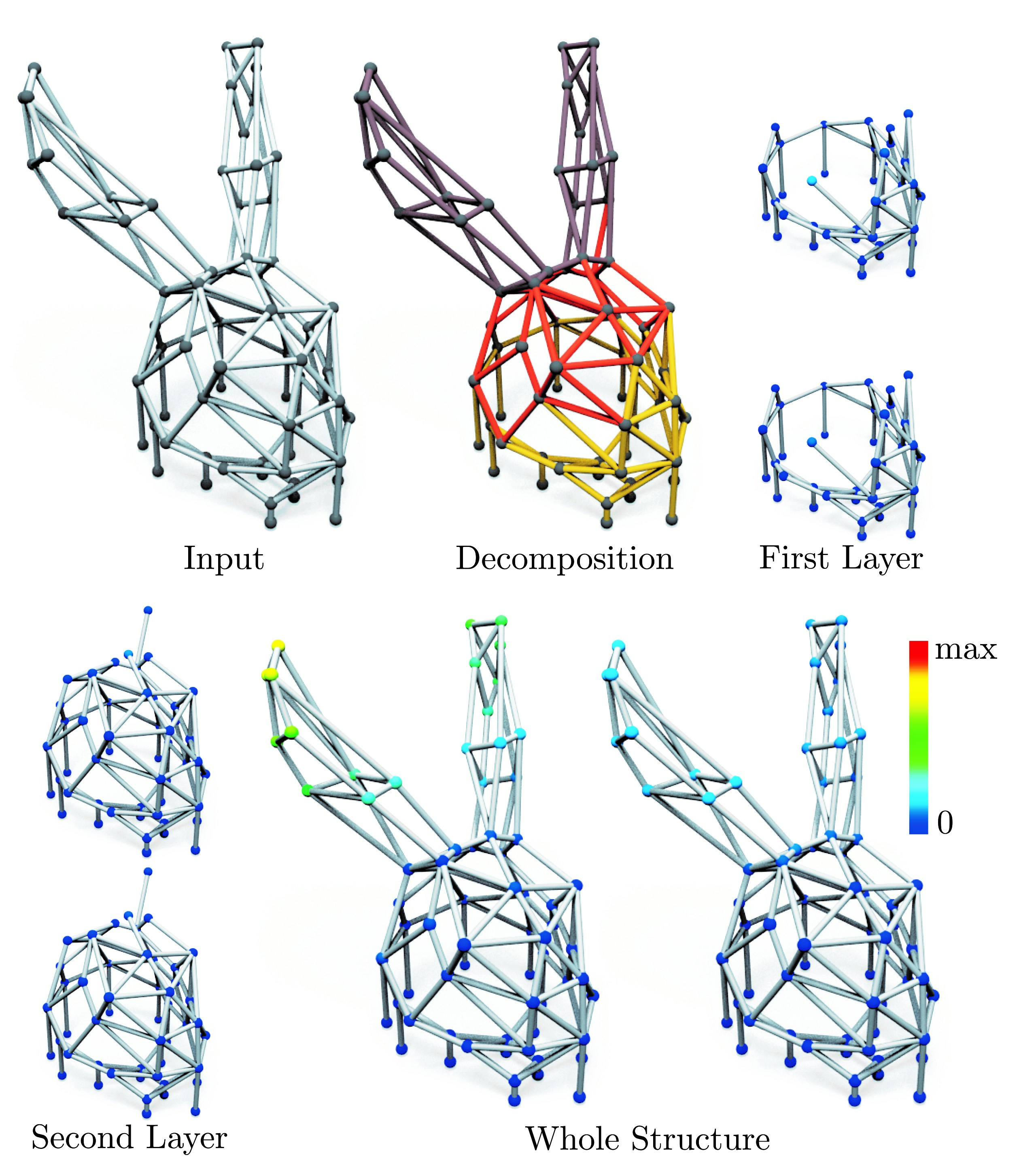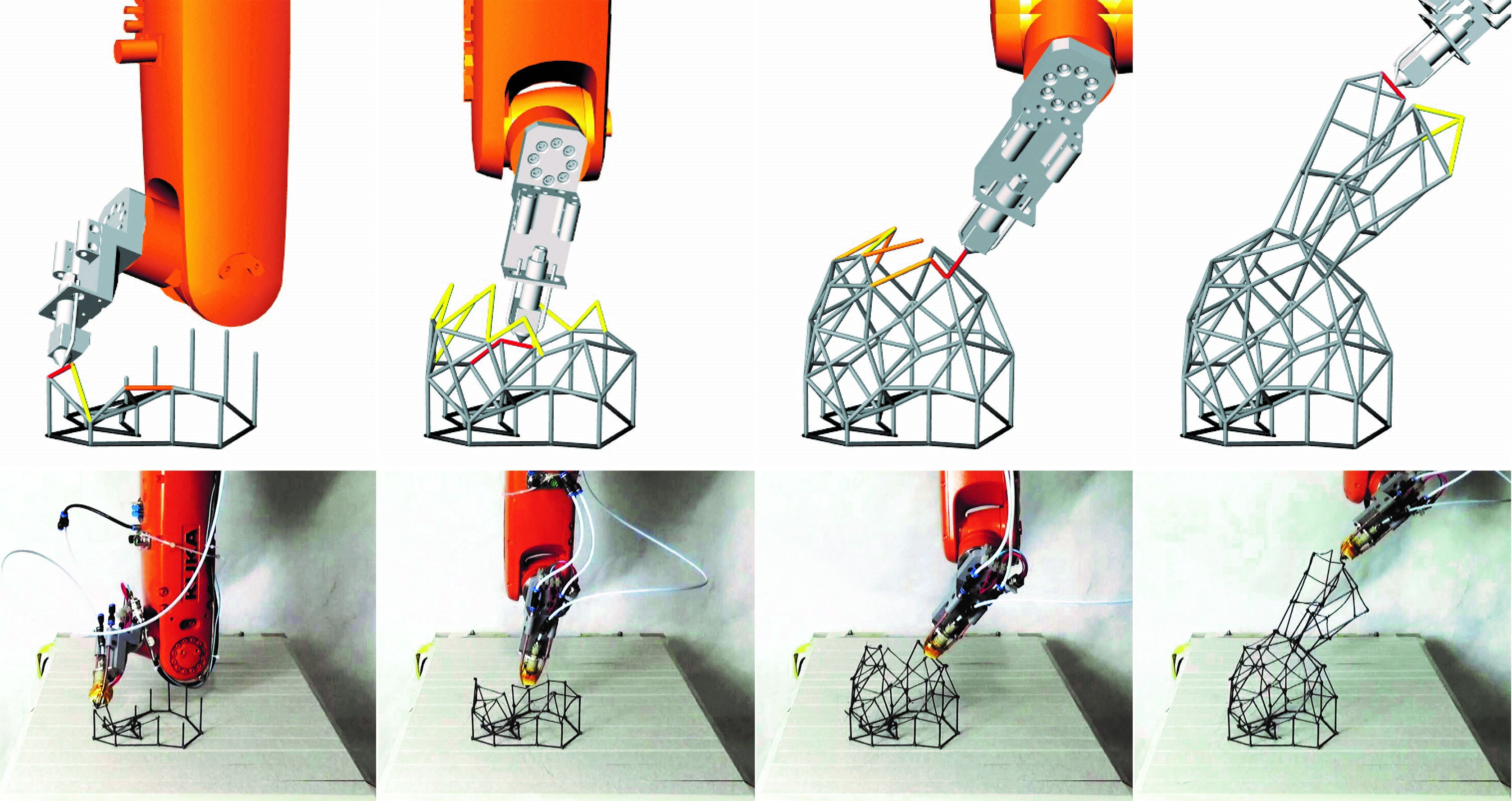 Abstract: Most of the polygon meshing system and related algorithm are developed for geometrical optimization with rarely any practical consideration such as material performance and fabrication process. This paper intends to propose a different approach for mesh optimization that took practical elements such as material quality, fabrication sequence, and technical restriction into the consideration, developing a novel meshing algorithm. Through our novel nonlinear optimization process, a data intensive smart polygon mesh network system is generated that are optimized for a highly efficient construction process in coordination with a robotic FDM 3D printing system. The mesh network developed from such process and algorithm is structurally rational, cost efficient with far less construction time.
