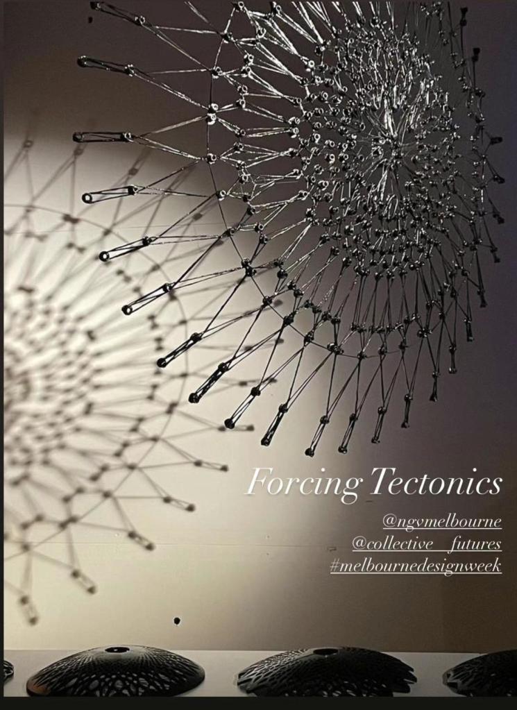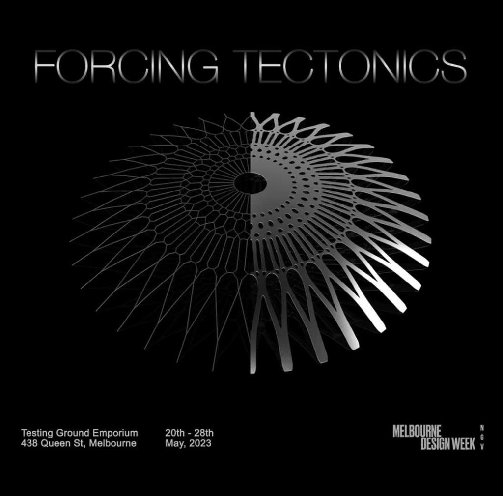 Forcing Tectonics is an exhibition exploring the integration of generative design and digital fabrication in the creation of circular shell plates. These circular shell plates showcased in the exhibition are generated using a structural performance-based algorithm and fabricated using advanced manufacturing techniques that integrate robotic weaving and 3D printing to produce customized components and their future implications for architectural design. The exhibition speculates on the potential applications of digital and automated technologies in the design and fabrication process to significantly improve the productivity of customized non-standard design components and performative material composites, showcasing significant potential in the fabrication of building-scale components.