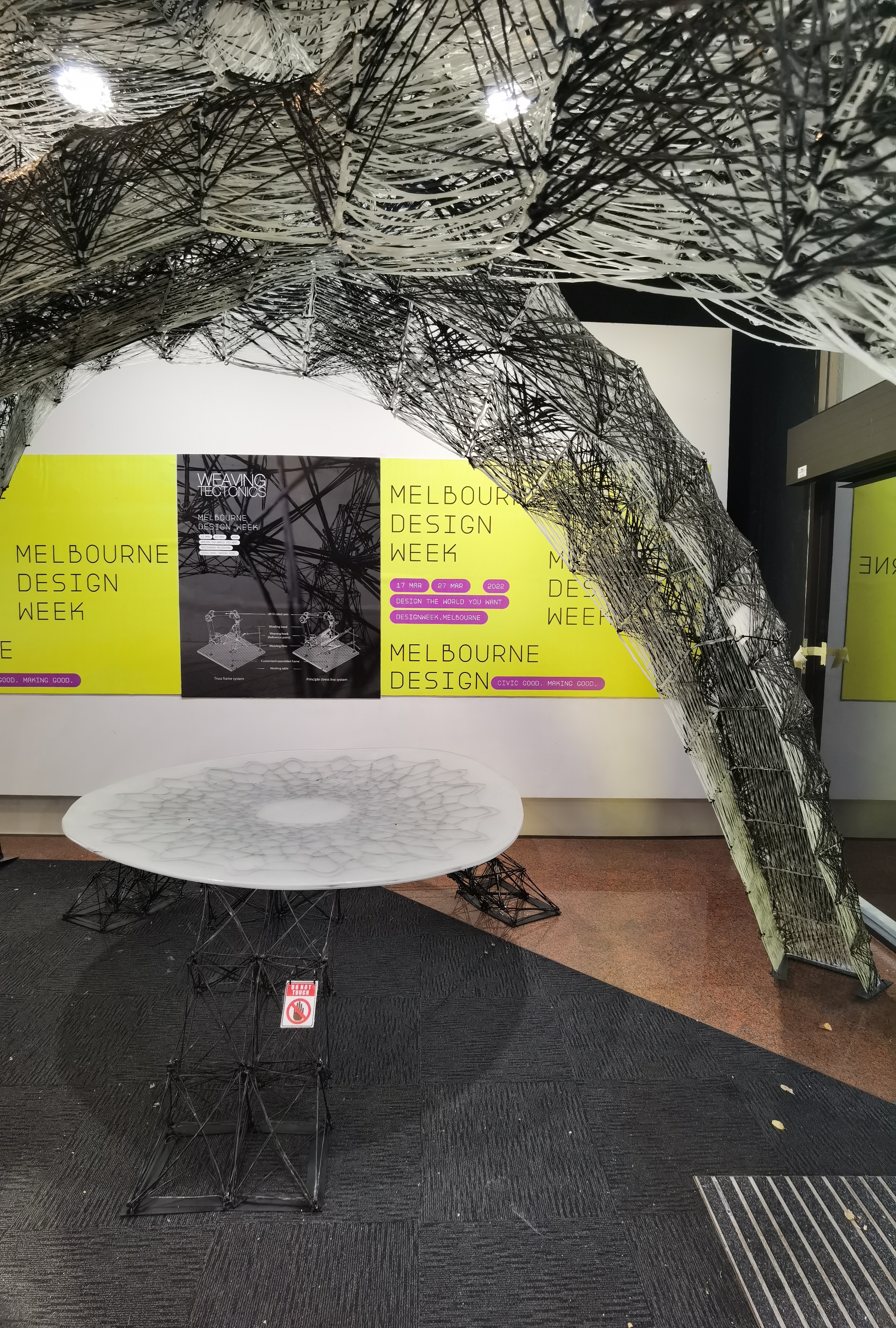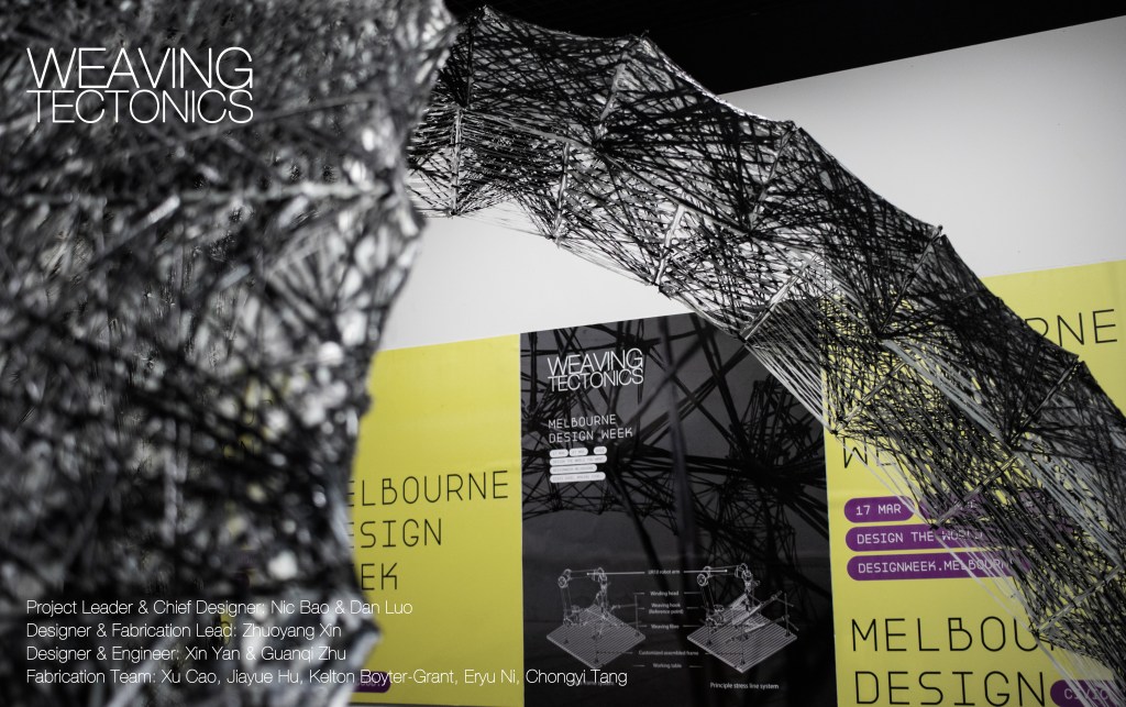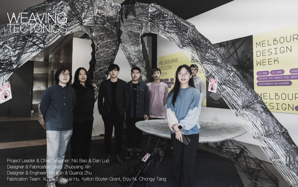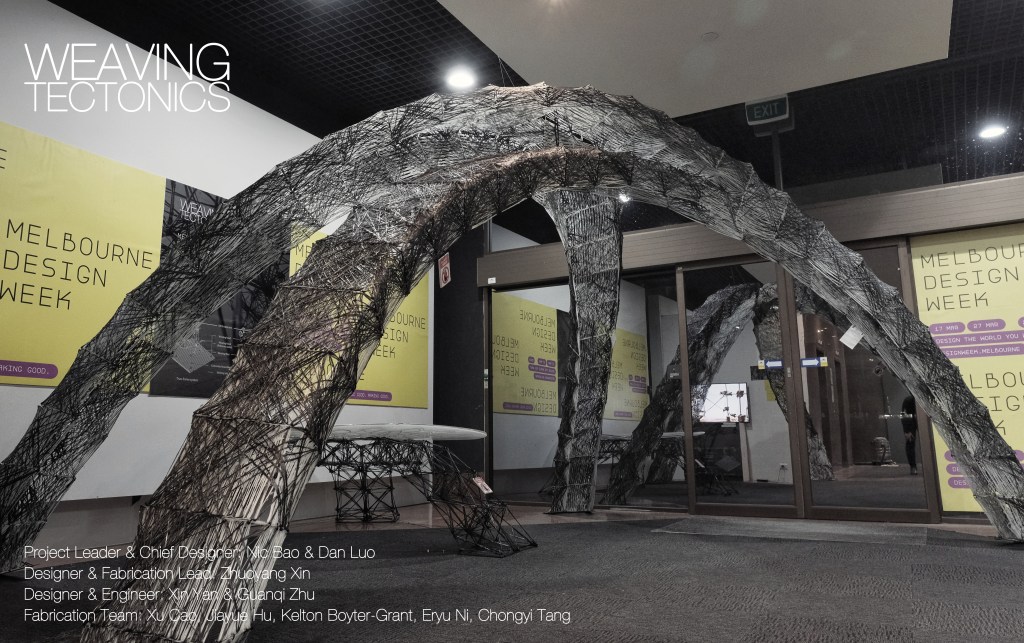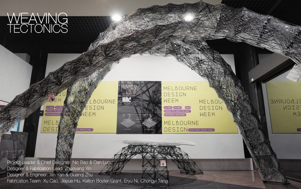 On March 27th, the project ‘Weaving Tectonics’ successfully started exhibition in Melbourne for the Melbourne Design Week 2022, the structural performance based carbon fiber installation and furniture, presented as a collaboration between RMIT Architecture and The University of Queensland.
